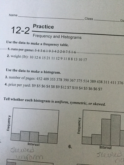 Histogram Practice Worksheet - Solved Use The Data To Make A Frequency Table Runs Per Chegg Com /